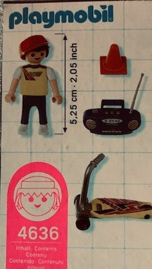 Deze set bevat een skate-jongen met pet en soundblaster.