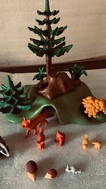 Deze set werd uitgebracht in 2010.Er leven allerlei dieren in het Playmobil bos. Zo bevat deze prachtige set: dassen, egels, vossen, vogels en een muis. Inclusief diverse holen en boompjes, waarin de dieren kunnen wonen.met instructieboekje