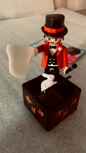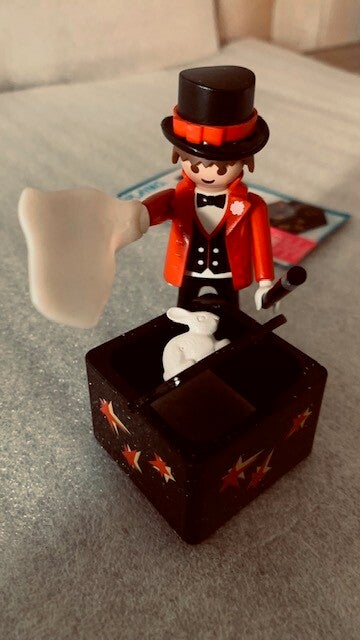 De goochelaar trekt het doek weg en als een wonder is het konijn is verdwenen! Wat een knappe goocheltruc!