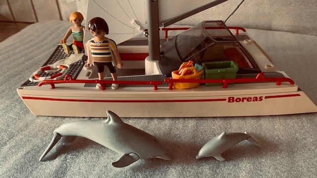Inclusief 2 Playmobil figuren, 2 dolfijnen, reddingsboei en een koelbox.