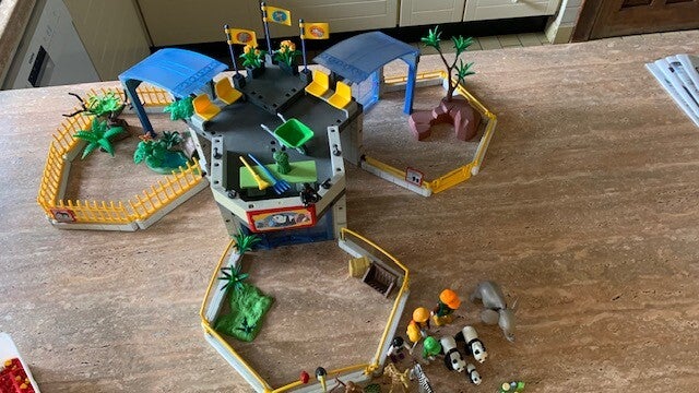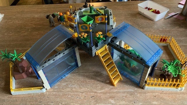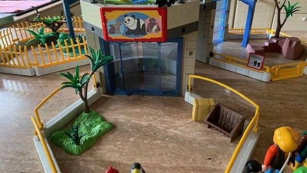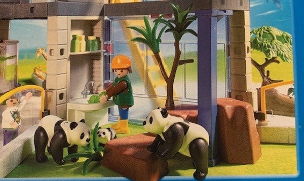 Deze set bevat o.a. het grote gebouw, drie buitenverblijven, een binnenverblijf, een pandafamilie, apenfamilie, babygiraffe, baby olifant, een moeder met kinderen, een verzorger en nog veel meer jonge dieren en leuke accessoires.