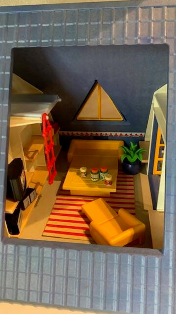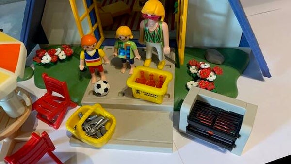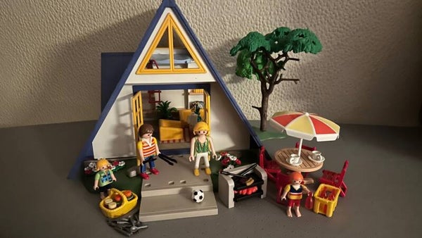 Deze set van Playmobil bevat o.a. het vakantiehuis, 4 Playmobil speelfiguren, een vloerkleed, een bank, een stoel, een salontafel, een tv, een tafel met parasol, planten, een barbecue en nog veel meer leuke accessoires.