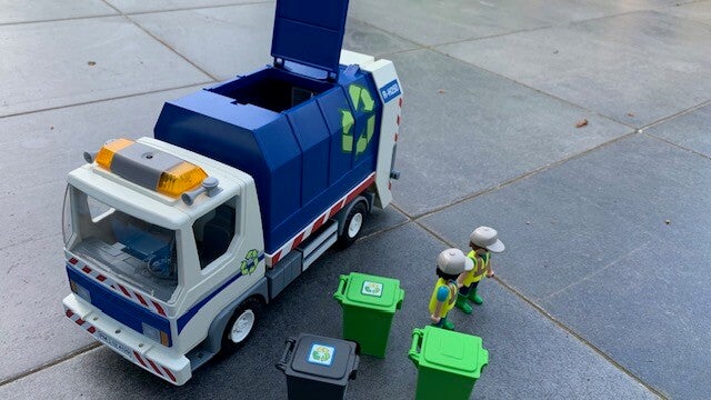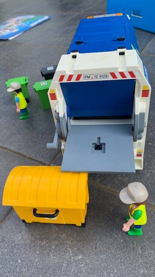 Deze set bevat 2 speelfiguren, 2 vuilbakken en een afvalcontainer.