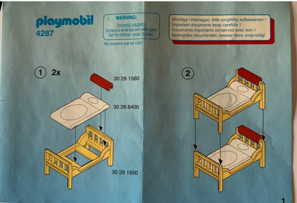 Leuke kinderkamer met speelruimte. De set bevat 2 kinderfiguren, een bureau, een stapelbed en een speelkleed met miniatuur de Ark van Noach.