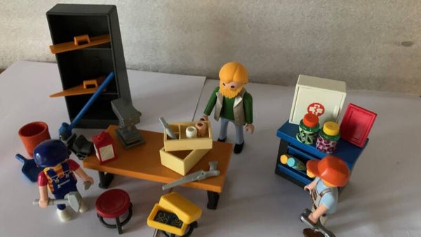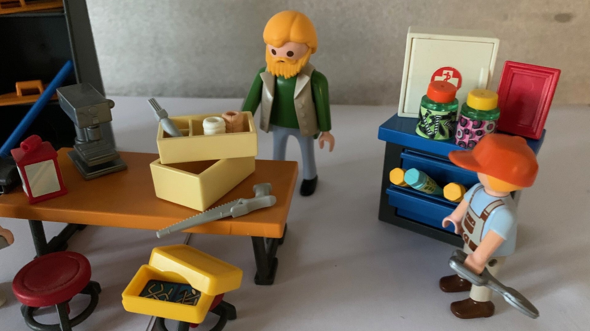 Breid je Playmobil school uit met dit praktijklokaal. De handjes uit de mouwen! Deze werktafel heeft inklapbare poten. Inclusief kolomboor, schroevendraaier, bankschroef, zaag, houtlijm en EHBO kastje.
