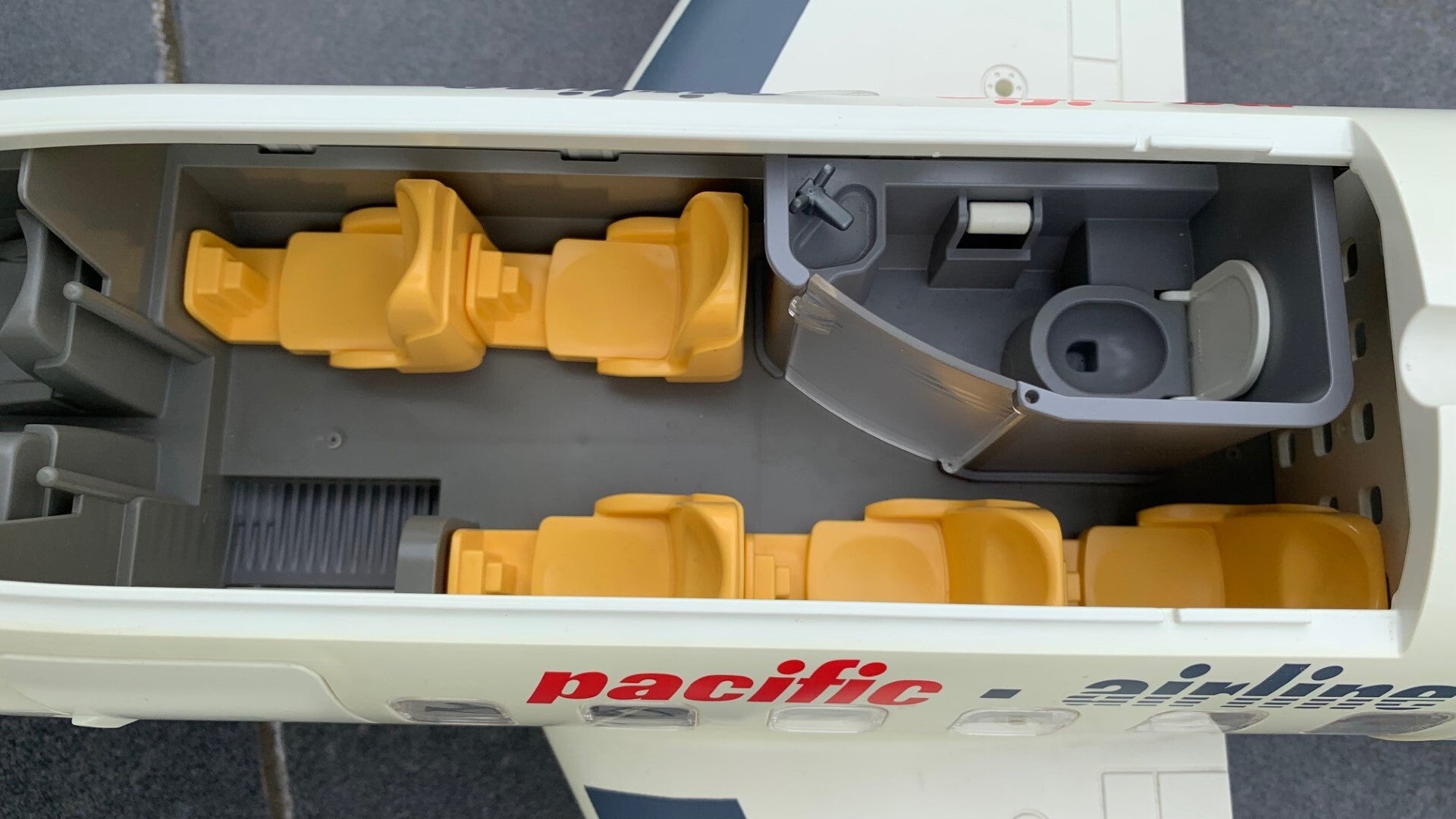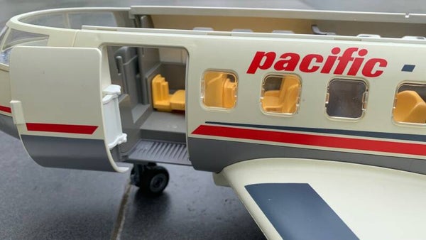 Deze set bevat een groot Playmobil vliegtuig voor vervoer van personen en vracht. De 5 passagierszetels kunnen neergeklapt worden. Inclusief toilet met wastafel.