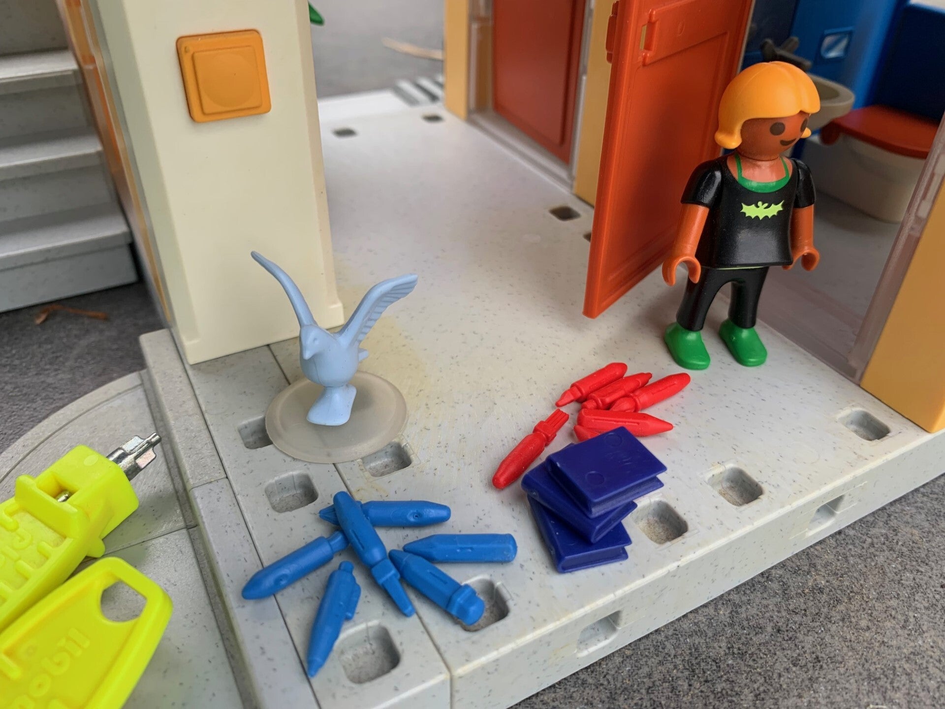 De schoolbel van deze Playmobil basisschool werkt bovendien echt.