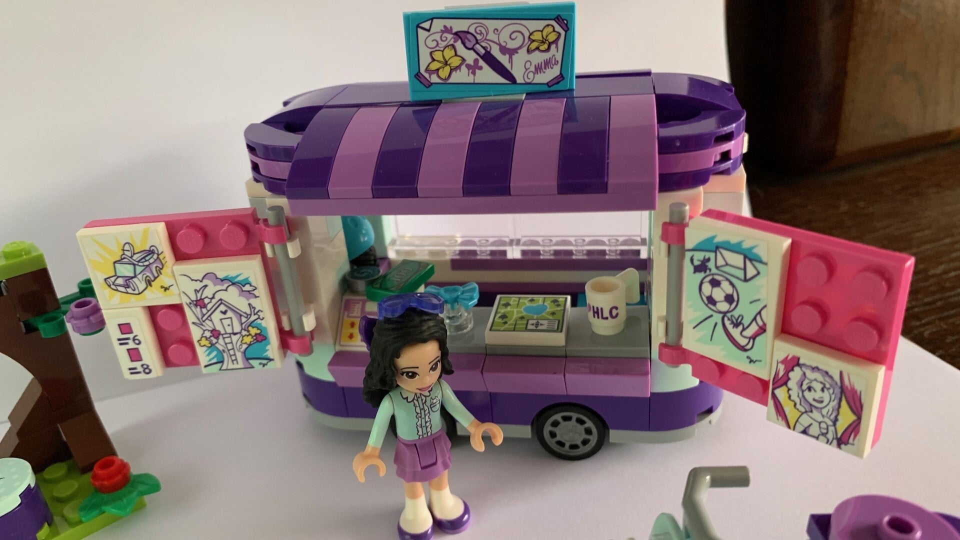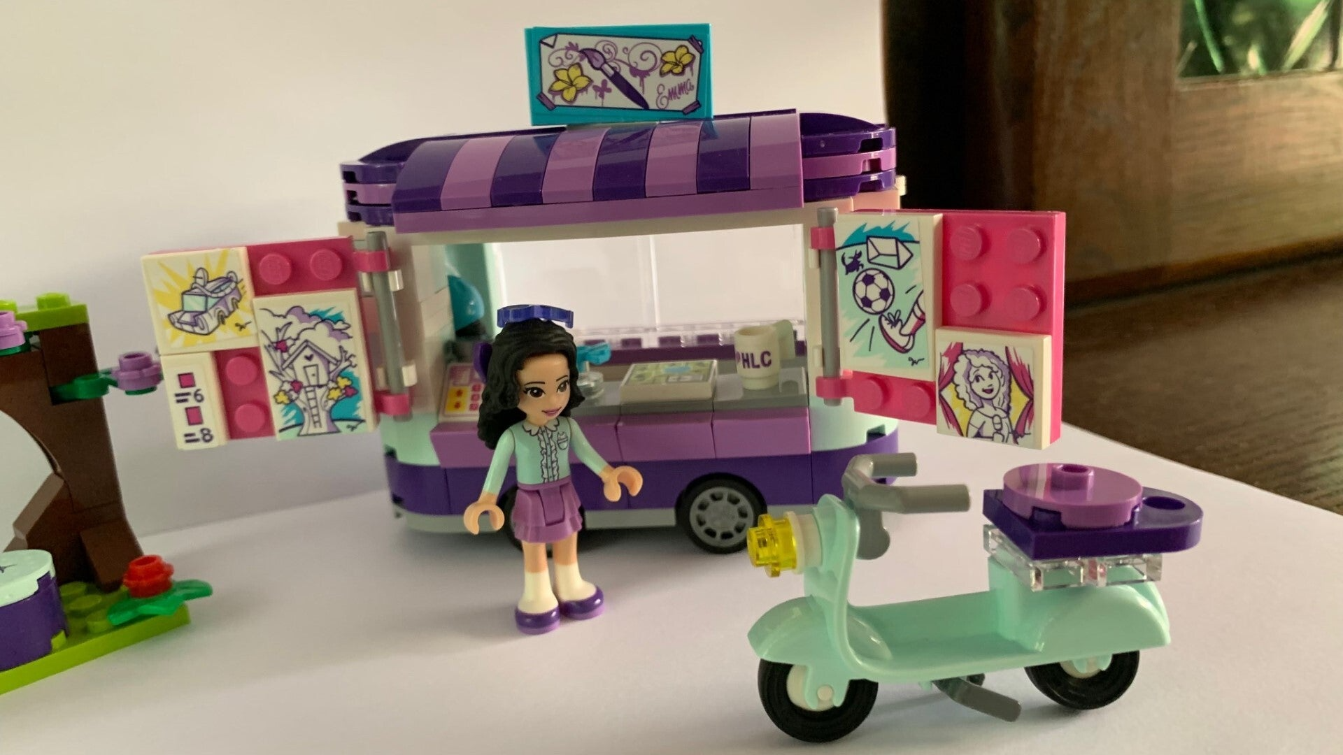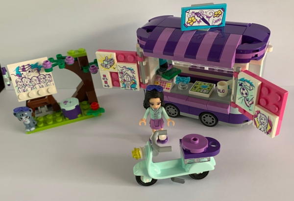 - Omvat een kunstkraamaanhangwagen die op 3 verschillende manieren geopend kan worden, een verkooploket, een kassa en een bedje voor de kat. Daarnaast zijn er ook nog een scooter en een apart schildergedeelte met een schildersezel, een krukje en een boom.
