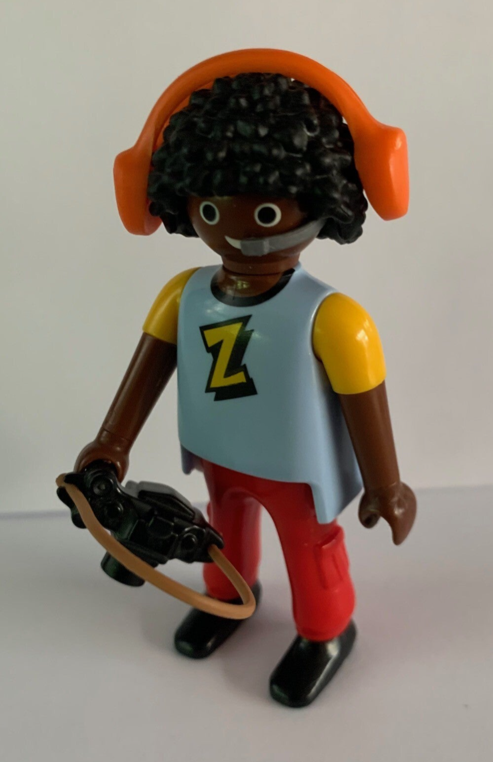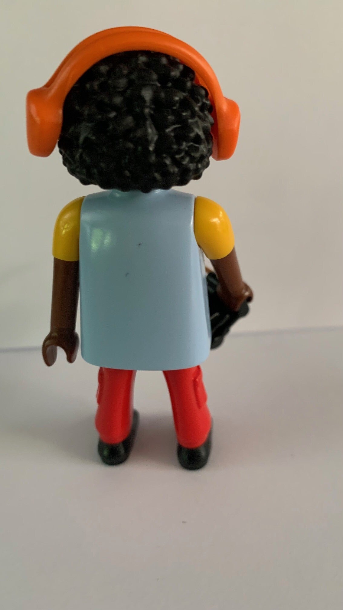 trendy playmobilman met hoofdtelefoon en fototoestel
