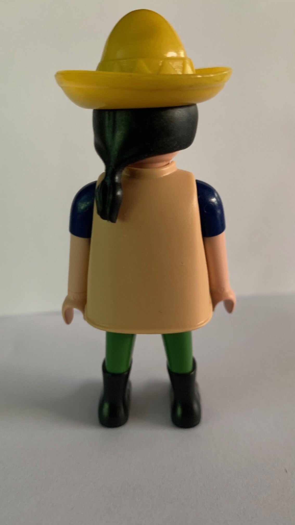 Deze playmobilman met sombrero is klaar om de zon te trotseren.