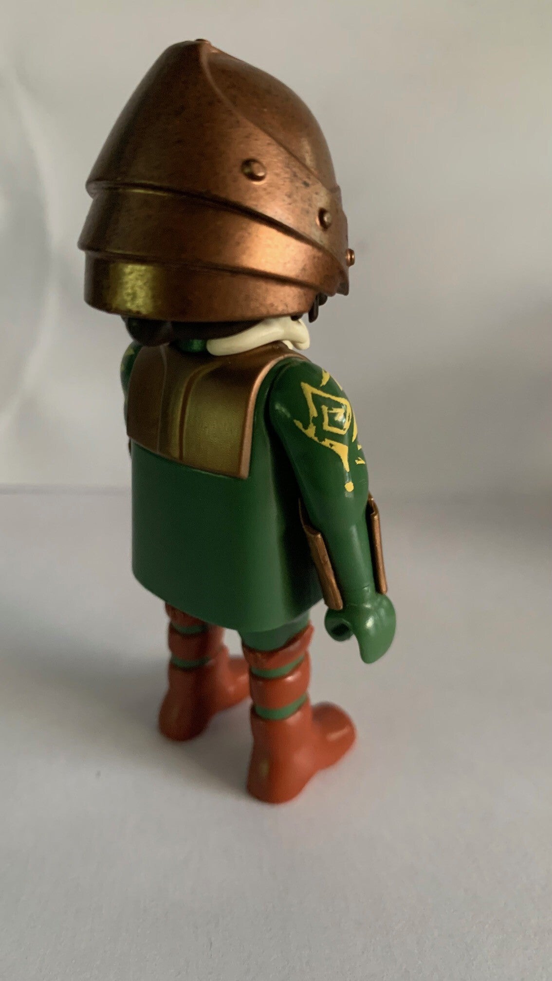 Enge, groene man met tandenketting, polsbanden en helm op.