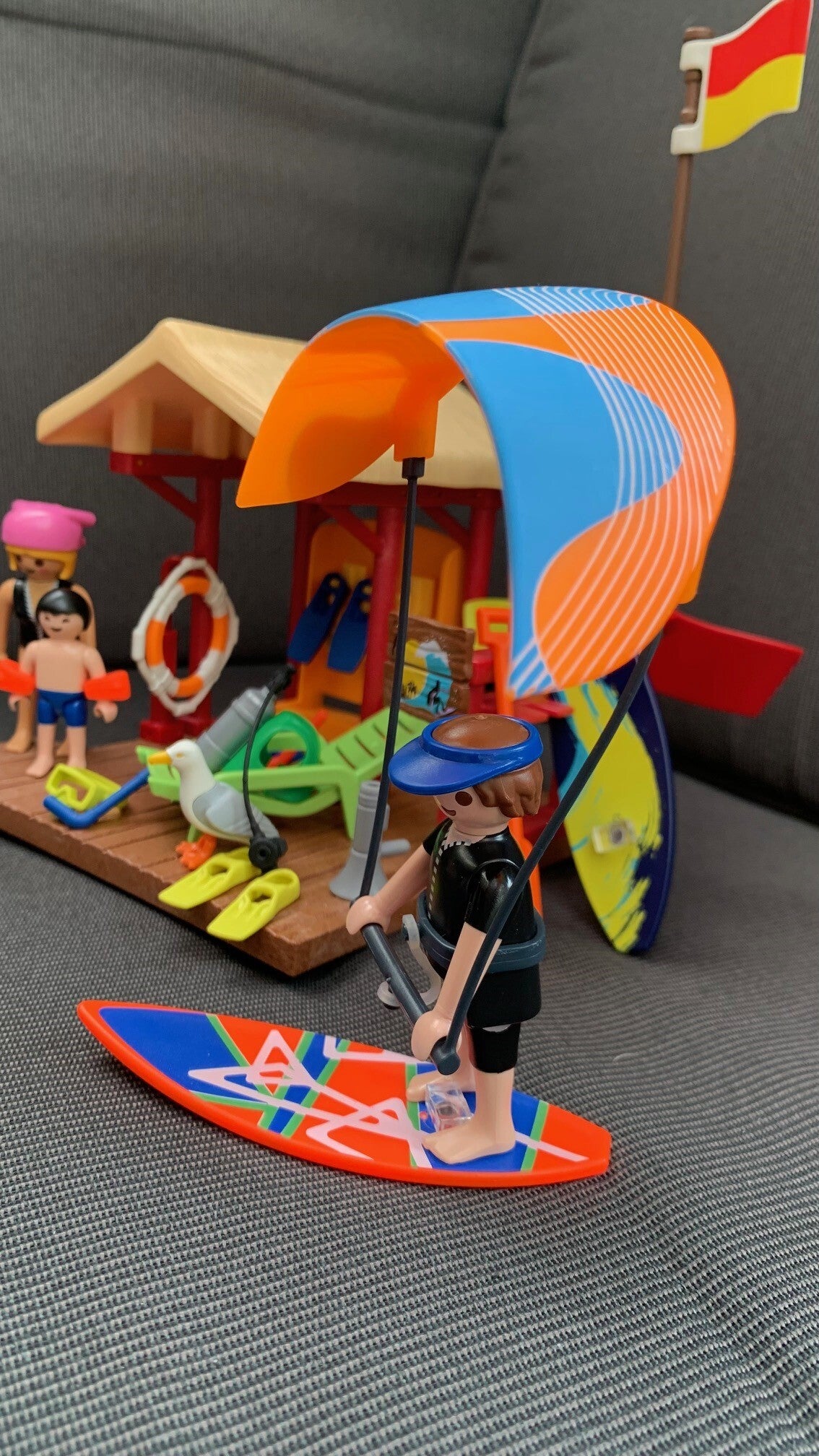 Inclusief 3 Playmobil speelfiguren en een zeemeeuw.
