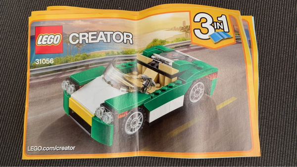 Stijlvol cruisen doe je met deze strakke sportwagen met cool groen, wit en zwart kleurenschema, getinte voorruit, voor- en achterklep die open kunnen, fraaie motor en ruime interieur met gedetailleerd dashboard en stuur en plaats voor twee minifiguren.