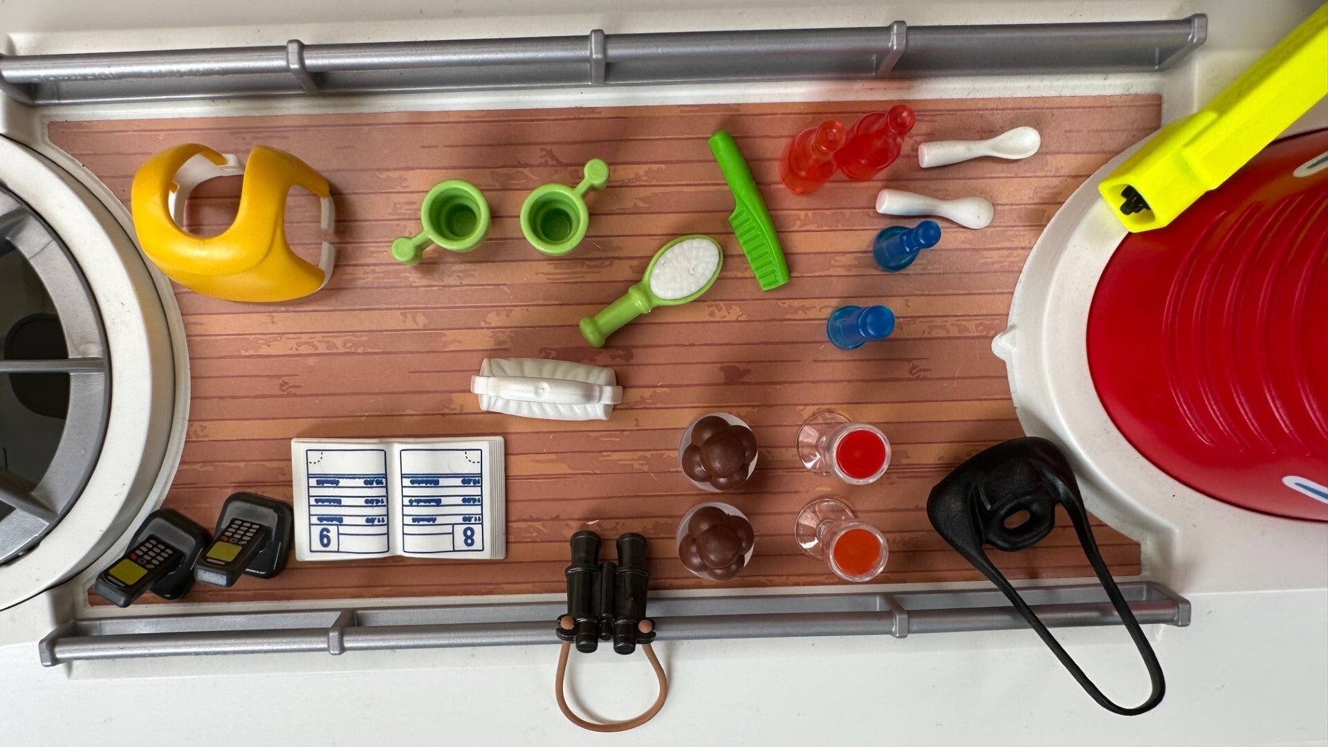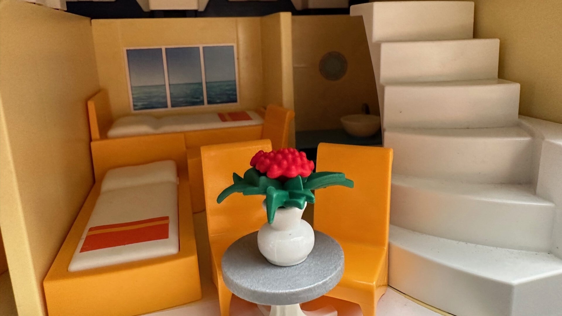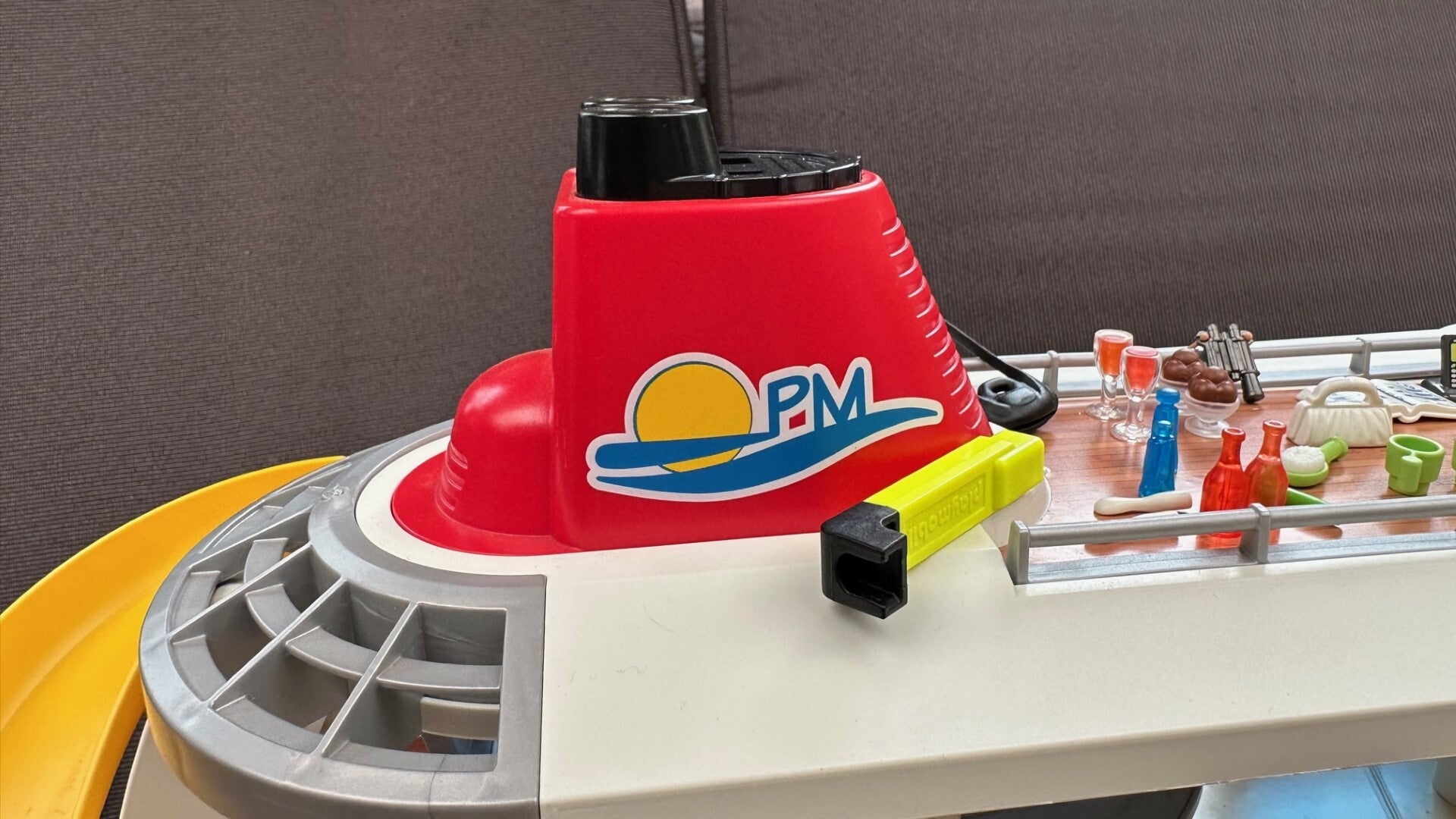 De Playmobil figuren kunnen op het dek staan en kunnen zich vasthouden aan de railing.