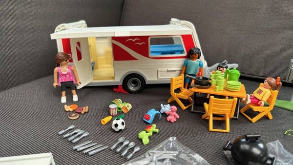 Inclusief een opvouwbare campingtafel, 4 stoelen, speelgoed (bal, pop, beer) barbecue (nieuw), werkgerief (nieuw), stroomvoorziening, ...