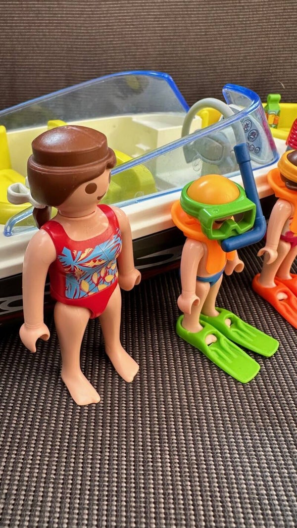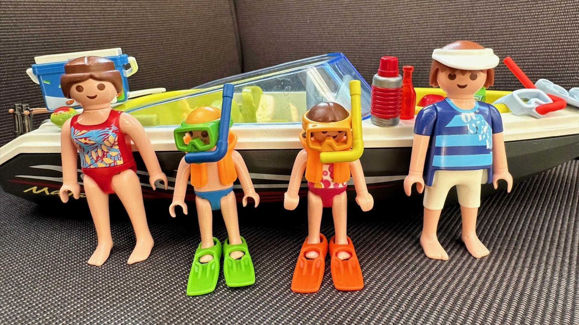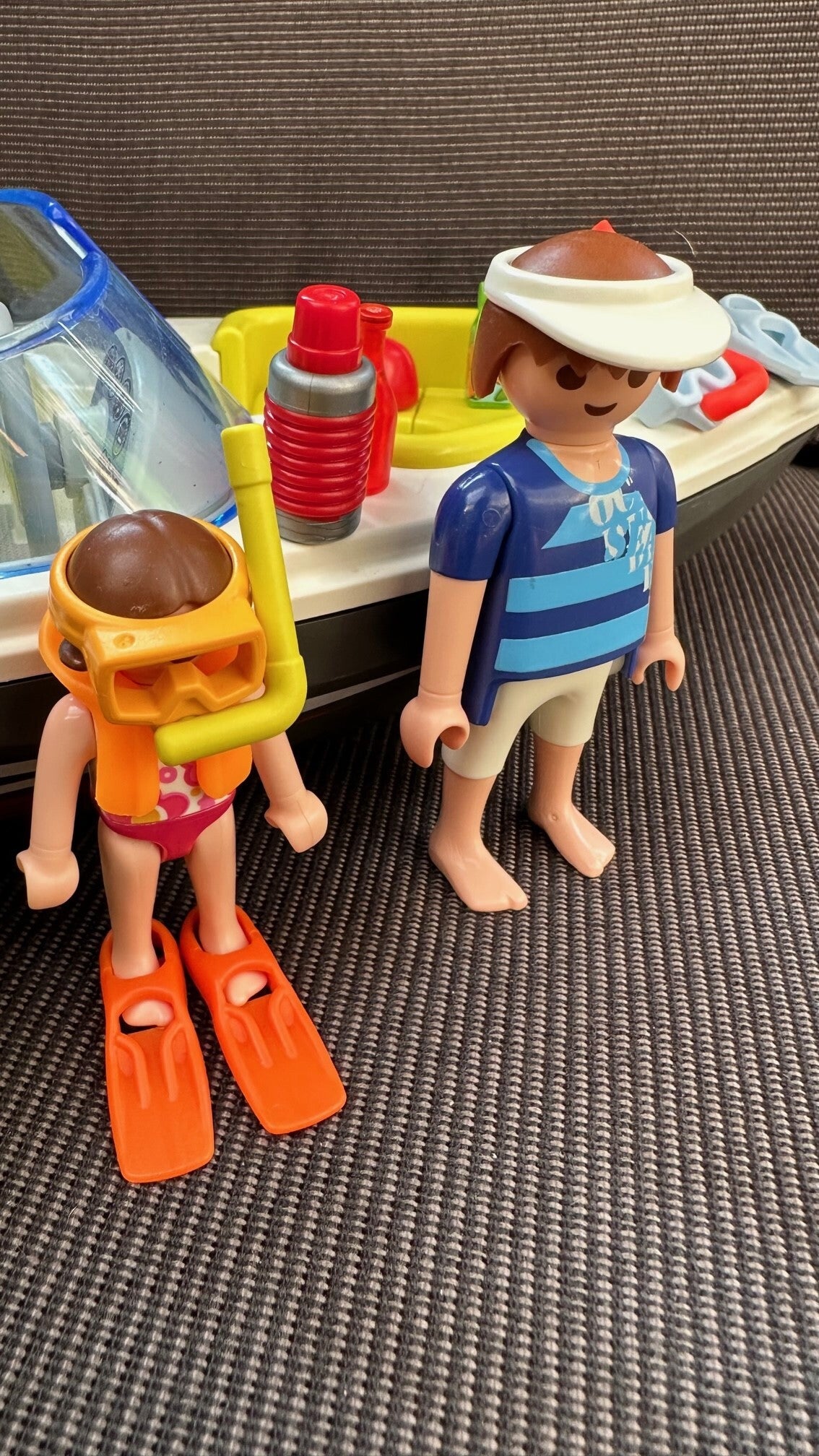 De boot is voorzien van een laadruimte en vele leuke accessoires zoals snorkeluitrusting, vader-, moederfiguur en 2 kinderfiguren, strandlakens etc.
