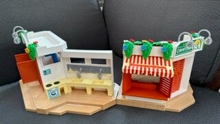 De diepvries, slagboom, krantjes en het geld zijn nieuw. Op de diepvries en de slagboom kleven geen stickers omdat ik ze niet meer kan bestellen.