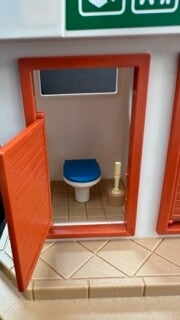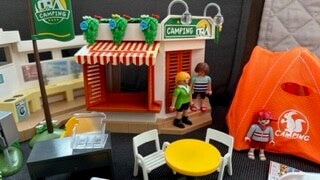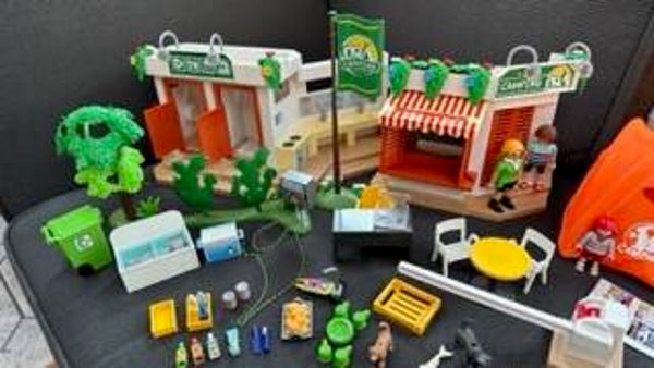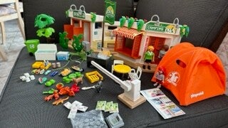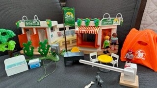 Deze set bestaat uit 2 gebouwen: een sanitaire blok en een receptie met winkeltje. Daarnaast is er nog een tent. De sanitaire blok heeft een echt werkende douche.