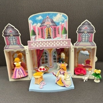 Deze prinsessenspeelbox vouw je open en je ontdekt onmiddellijk je favoriete speelwereld: het prinsessenprieel.