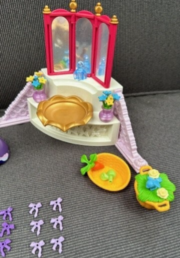 Ondertussen kan het paard zichzelf bekijken in de spiegel van de kaptafel.