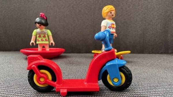 Deze 2 kinderen maken veel plezier met hun buitenspeelgoed.