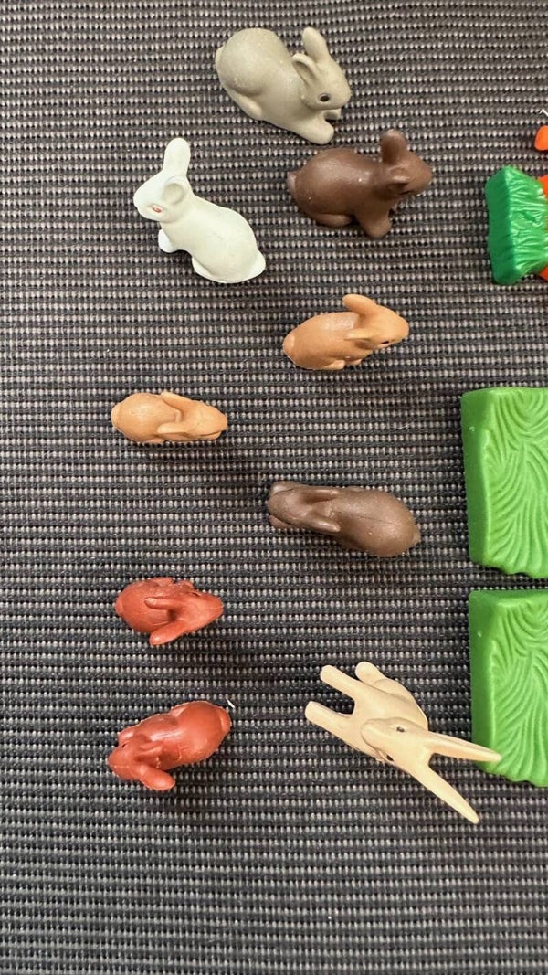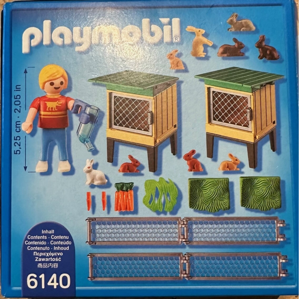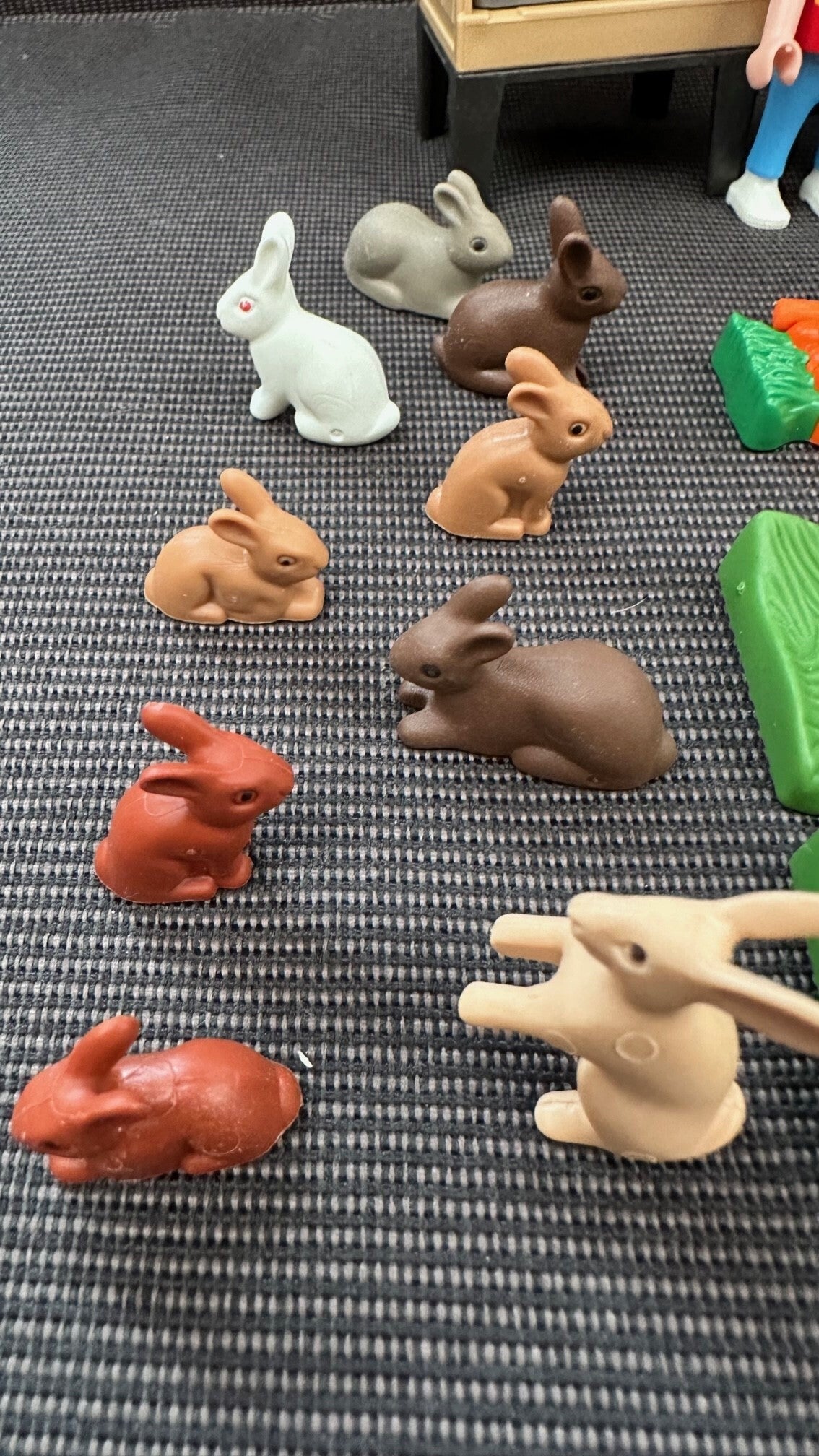 Leuk setje met kindje, 2 binnenhokken, een ren, gras, worteltjes en een drinkbus voor de konijntjes en uiteraard de konijntjes zelf.