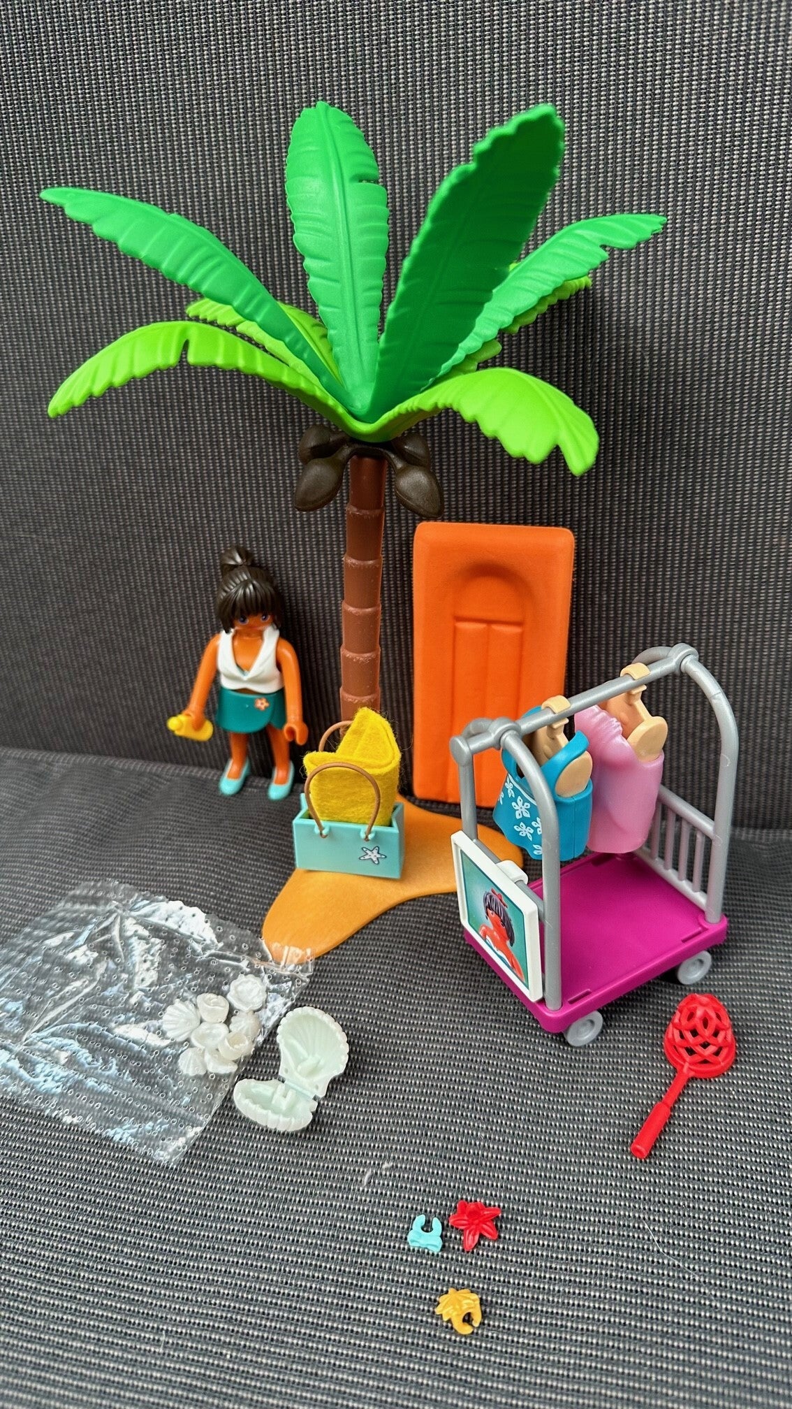Tijdens de grote modellenshow presenteren de Playmobil modellen hun nieuwste outfits. Van elegante neckholderjurk tot sportieve strandkledij.