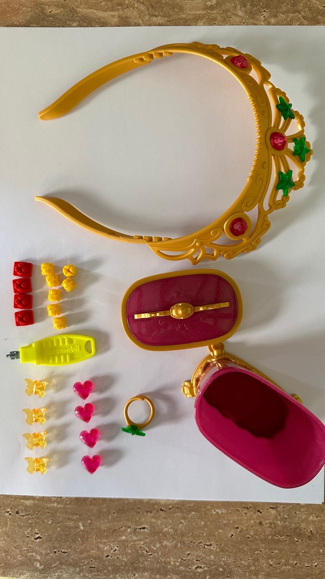 Inclusief diadeem en ring voor de eigenares van het kasteel en 2 Playmobil figuren.