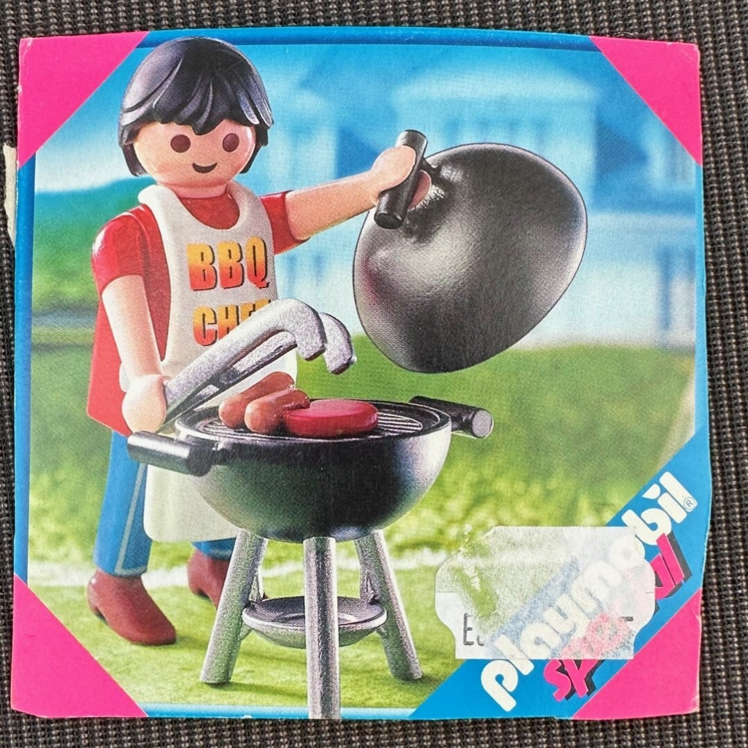 Met dit barbecue setje kun je een heerlijk etentje verzorgen. Inclusief barbecue met deksel, vleestang, schort, worstjes, hamburger en 1 Playmobil speelfiguur.