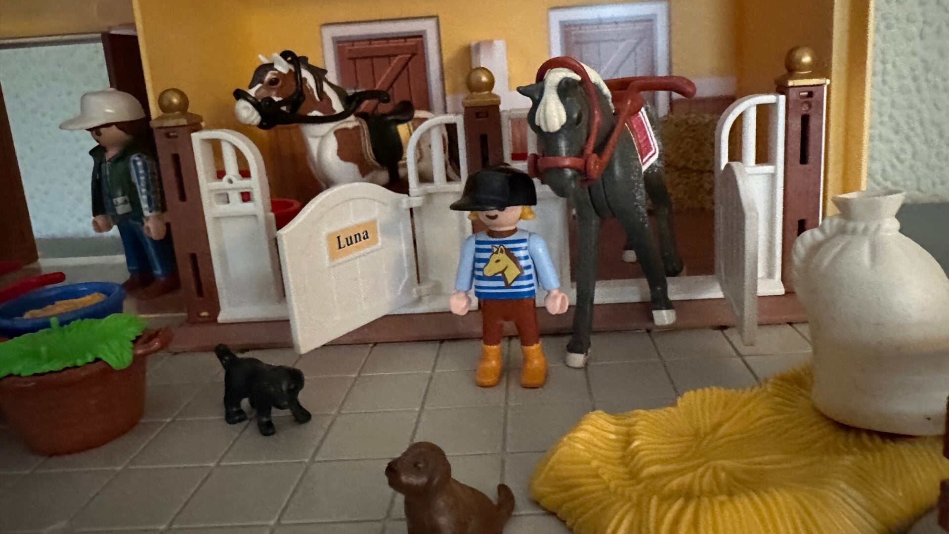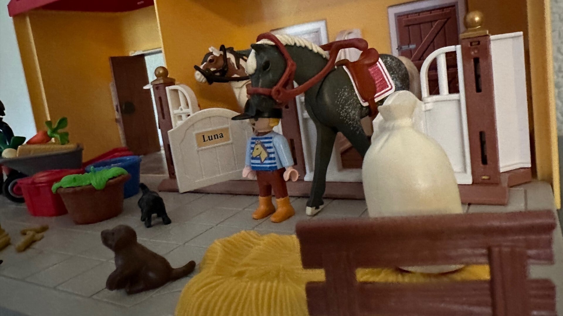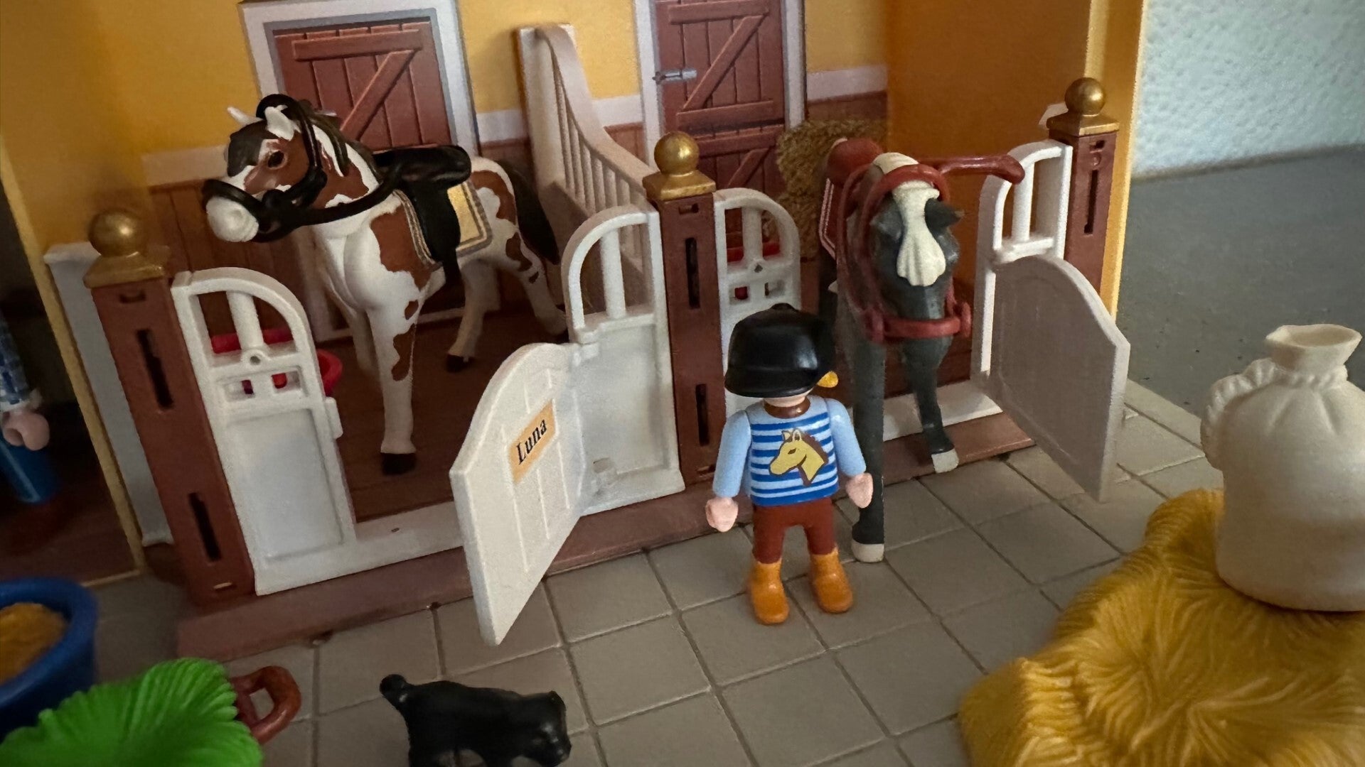 De stal heeft plaats voor de twee paarden Monty en Luna die vertroeteld worden door de stalknecht en zijn vrouw. Ook hun zoon en de hondjes zijn vaak te vinden in en rondom de stal.