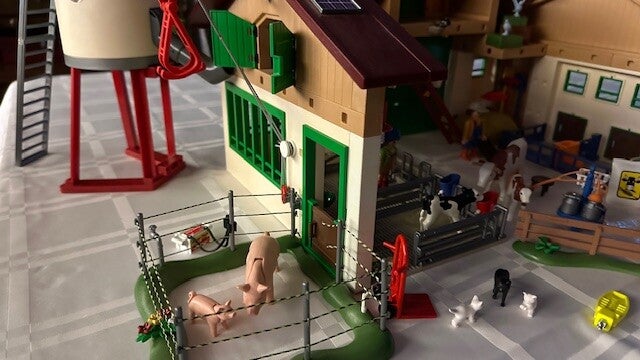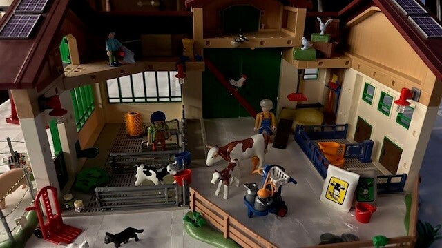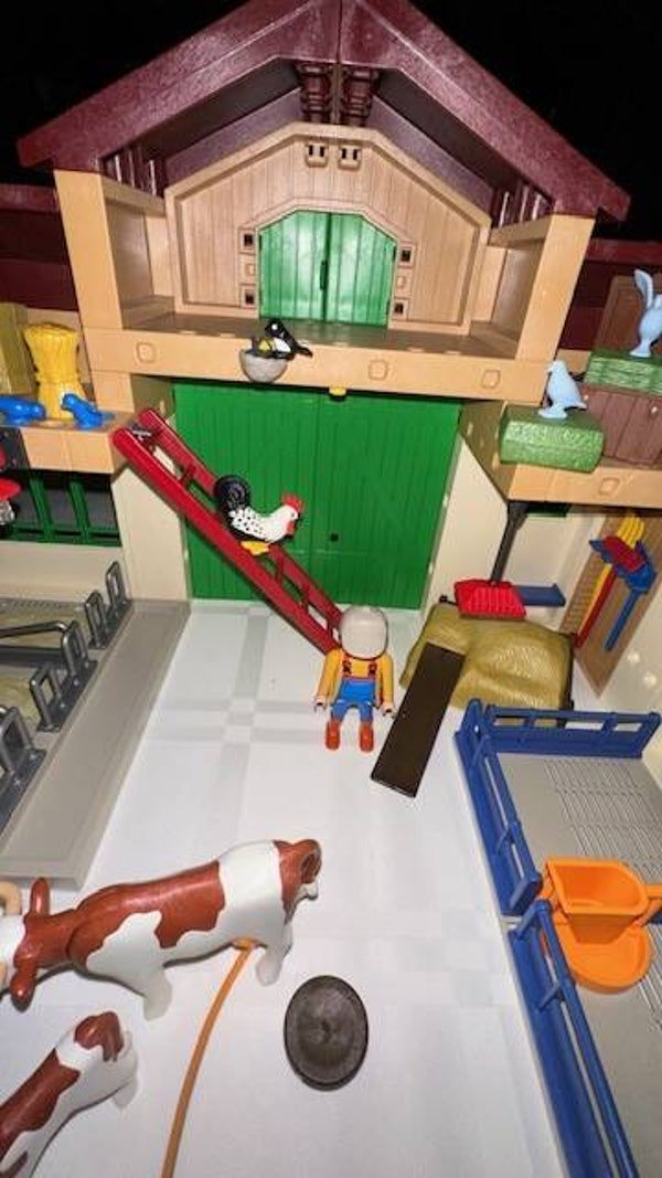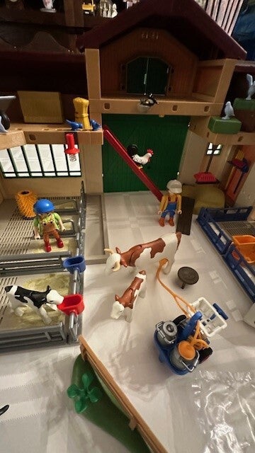 Deze boerderij is gevuld met losse goederen, veel dieren, personages, een koeien- en varkensstal met vele accessoires, zoals melkmachine en voederautomaat.