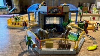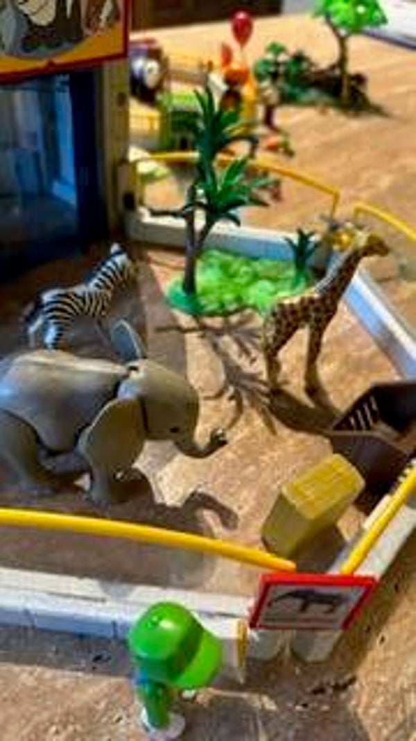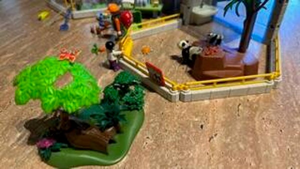 Deze set bevat o.a. het grote gebouw, drie buitenverblijven, een binnenverblijf, een pandafamilie, apenfamilie, babygiraffe, baby olifant, een moeder met kinderen, een verzorger en nog veel meer jonge dieren en leuke accessoires.