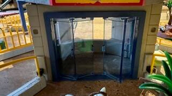 De sticker boven de inkom en ook de 'glazen' inkomdeuren zijn vernieuwd.