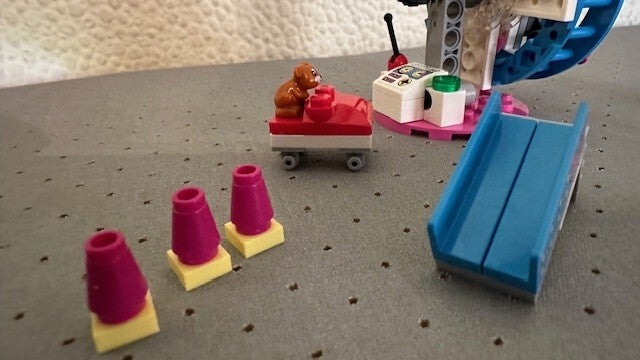- Leid de LEGO® Friends hamsters door de slalom, over de schans en door het geweldige wiel.