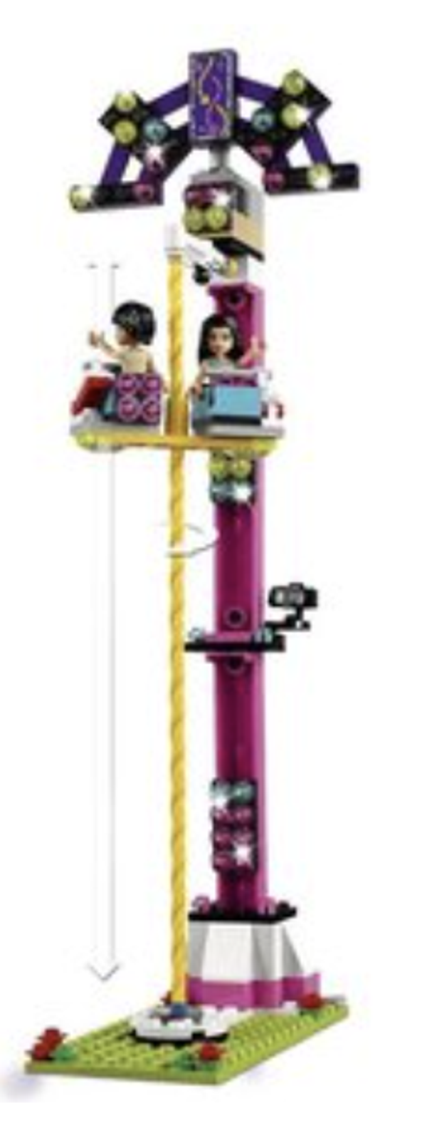 • Duw het wagentje naar de top van de vrije valtoren, lach naar de camera en glij in een supersnelle spiraalbeweging omlaag.