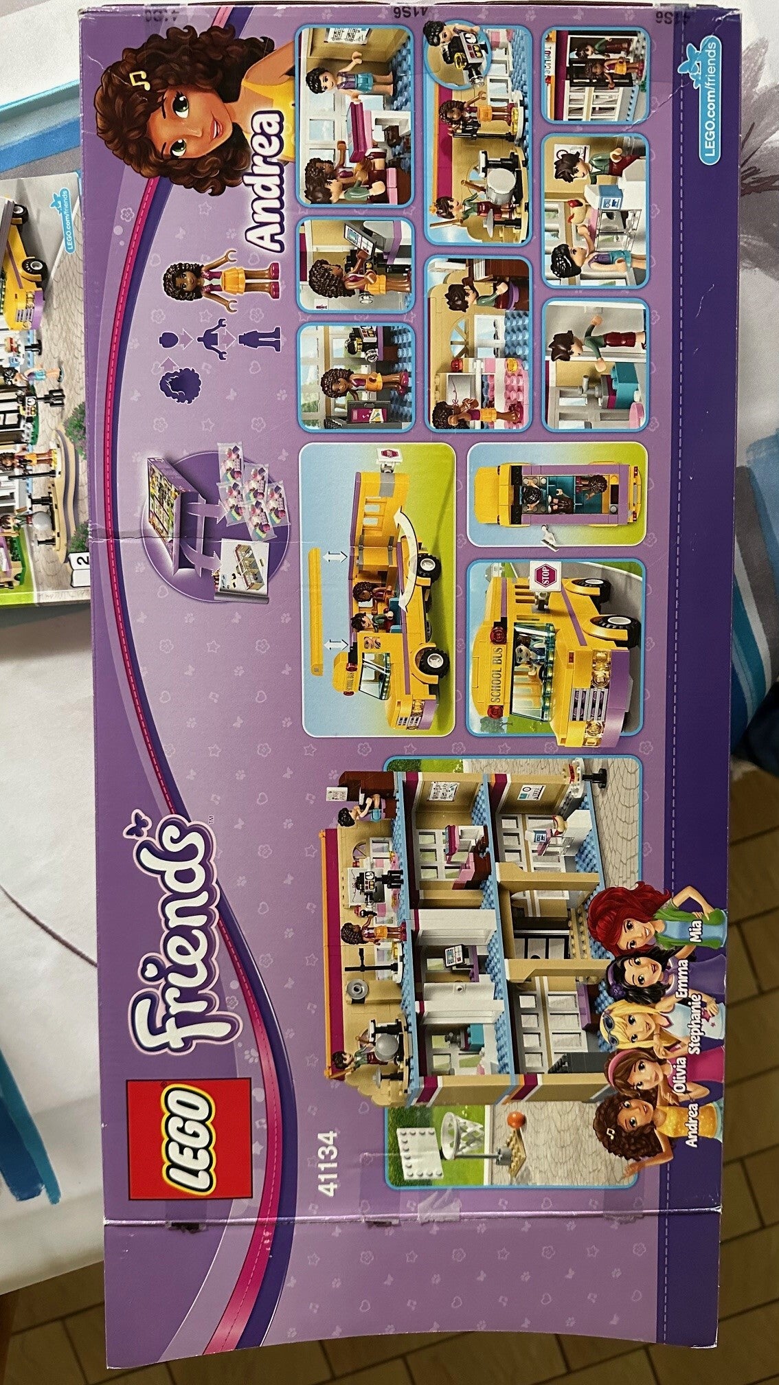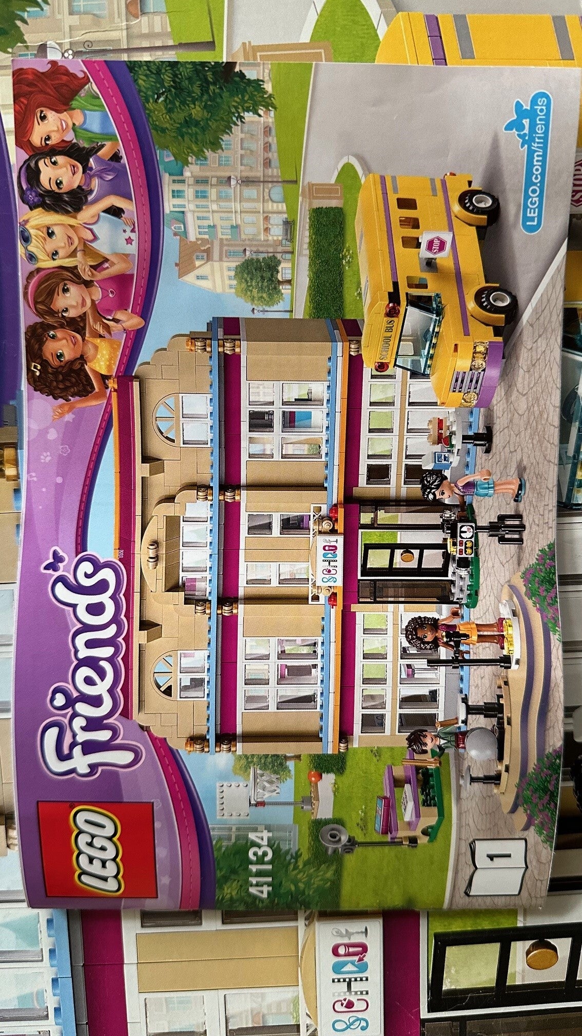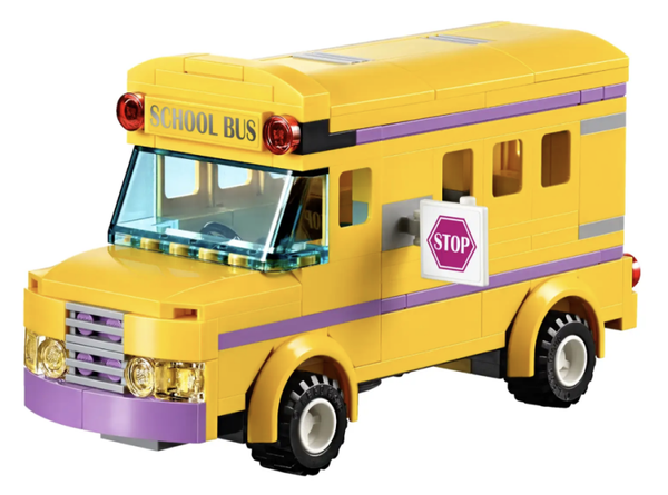 Rijd in de karakteristieke gele schoolbus naar de Friends Heartlake-theaterschool van LEGO!