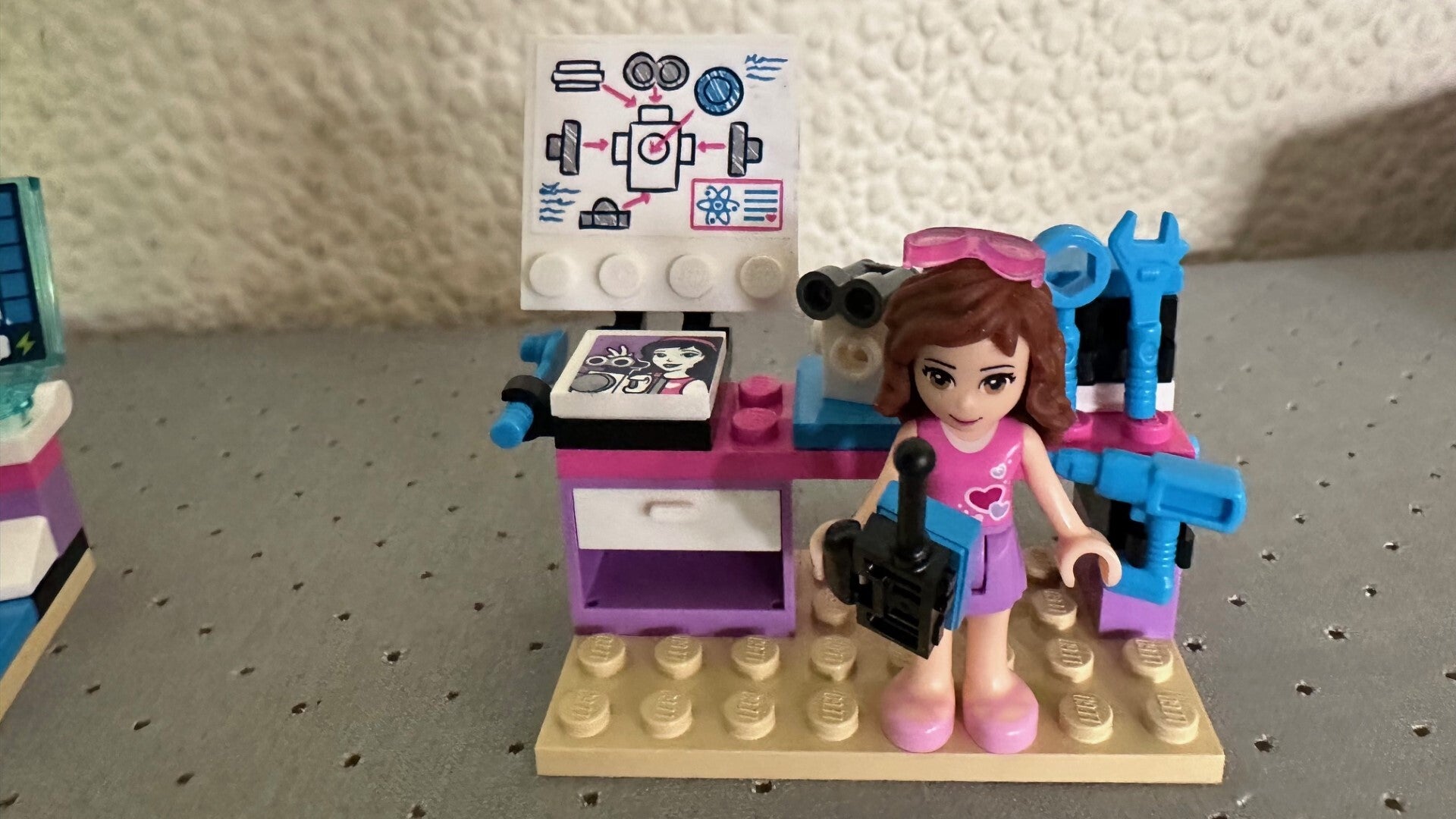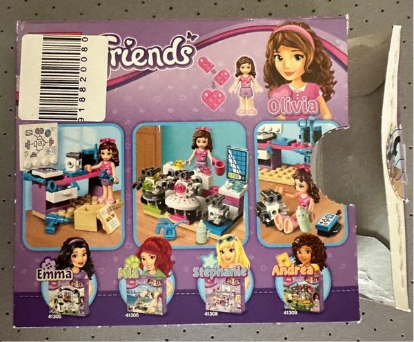 Met de LEGO® Friends set Olivia's laboratorium komen de uitvindingen van Olivia tot leven! Bij de set hoort een bureau met tekenbord en een lade die open kan, allerlei gereedschap plus een oplaadstation met plaats voor alle leden van de robotfamilie. Er is ook een scherm dat het batterijniveau toont. Inclusief een minipoppetje en drie robotfiguren om zelf te bouwen.