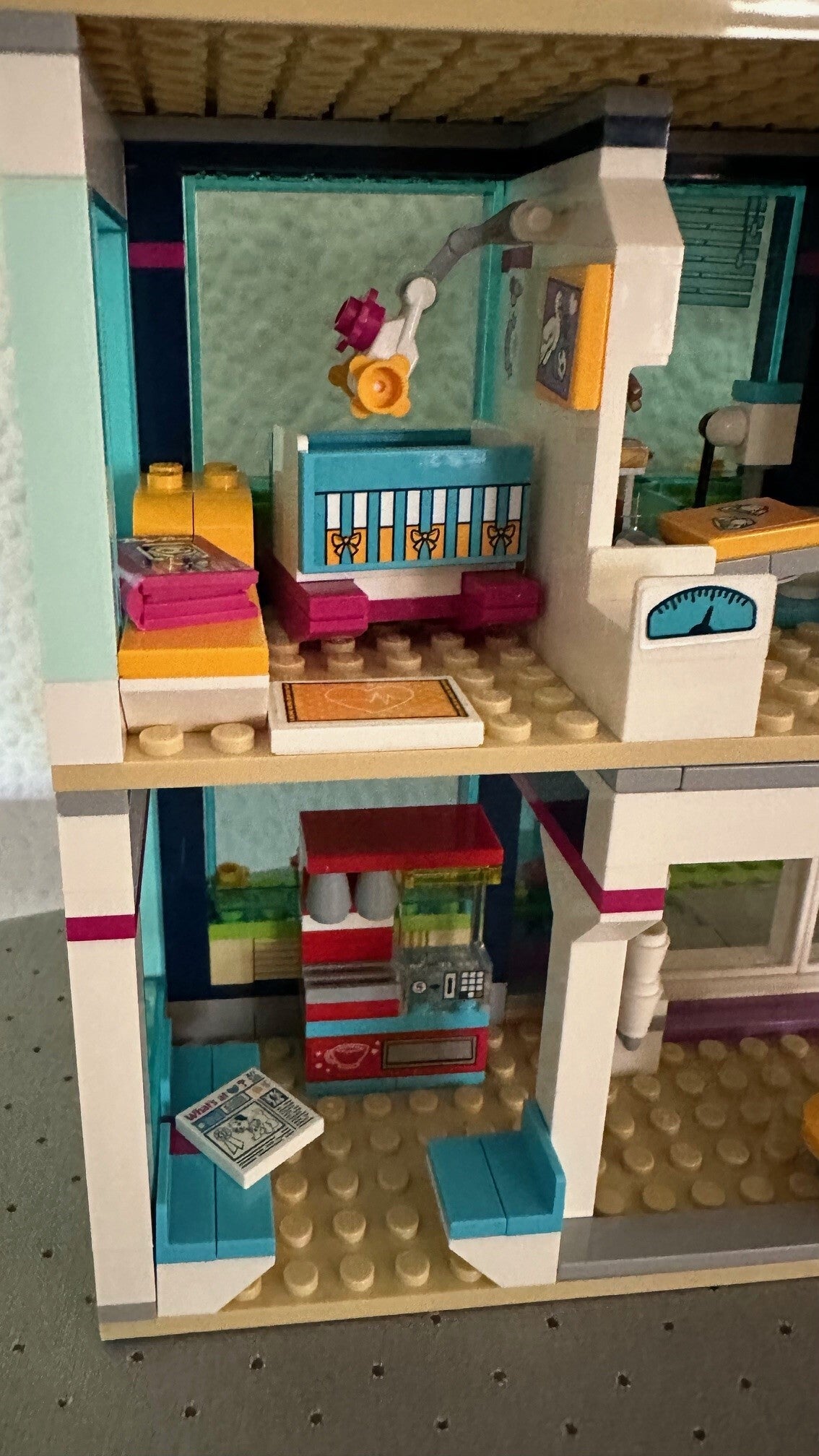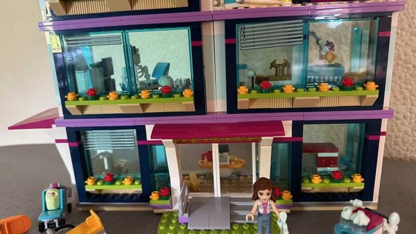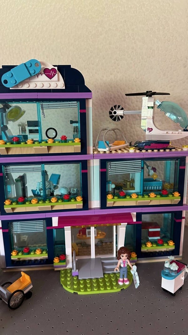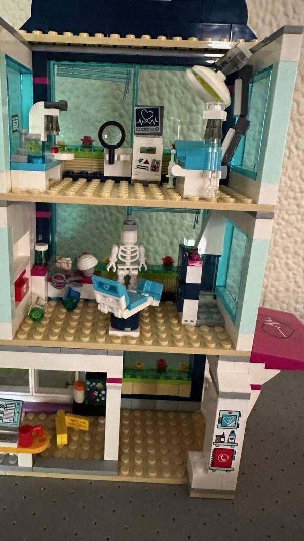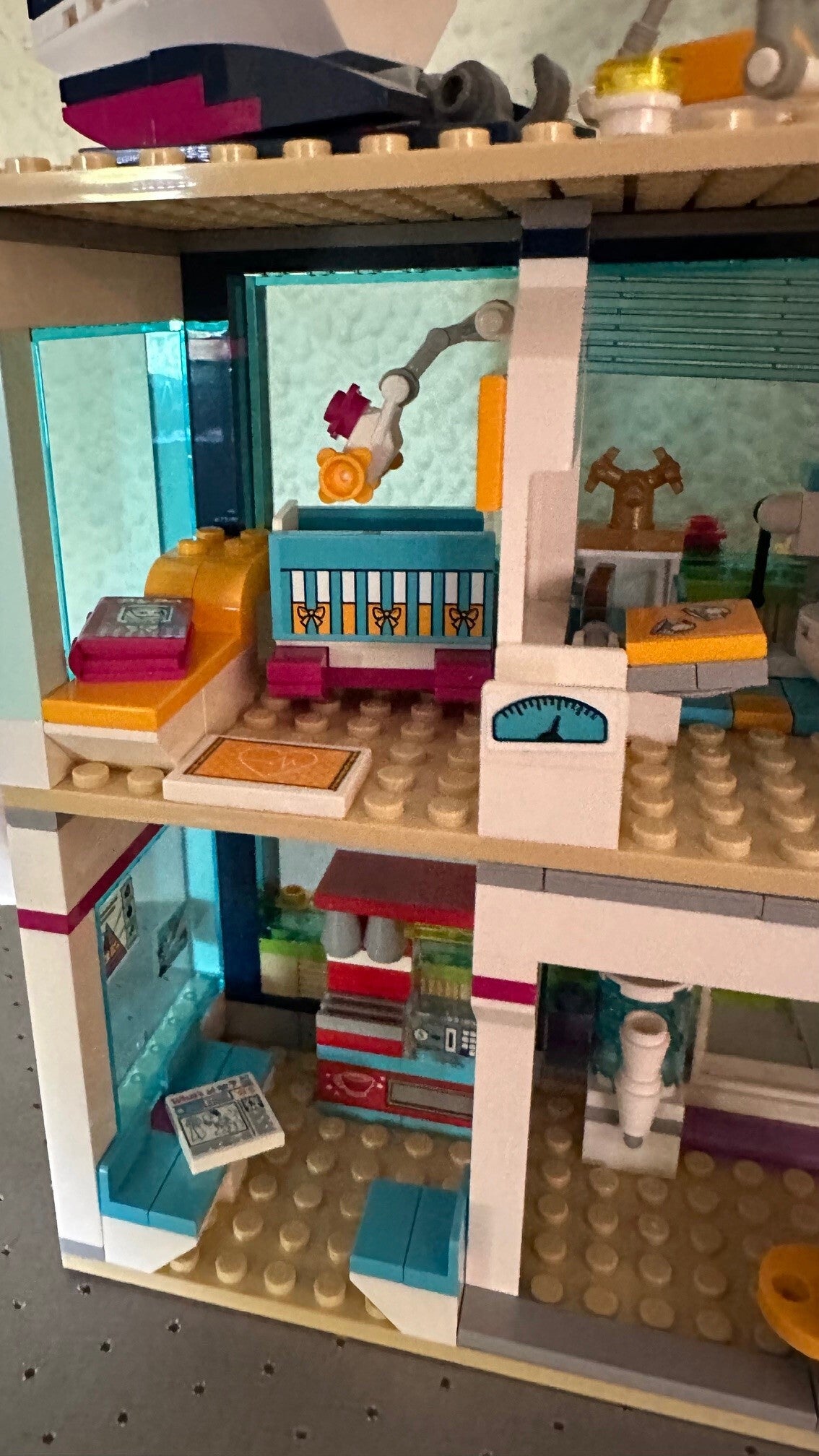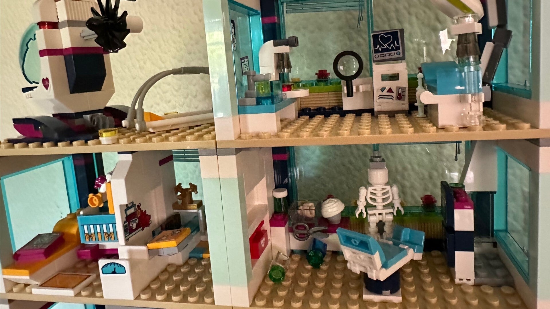 Het LEGO Friends Heartlake ziekenhuis omvat drie verdiepingen met behandelruimtes en apparatuur voor het verzorgen van patiënten.