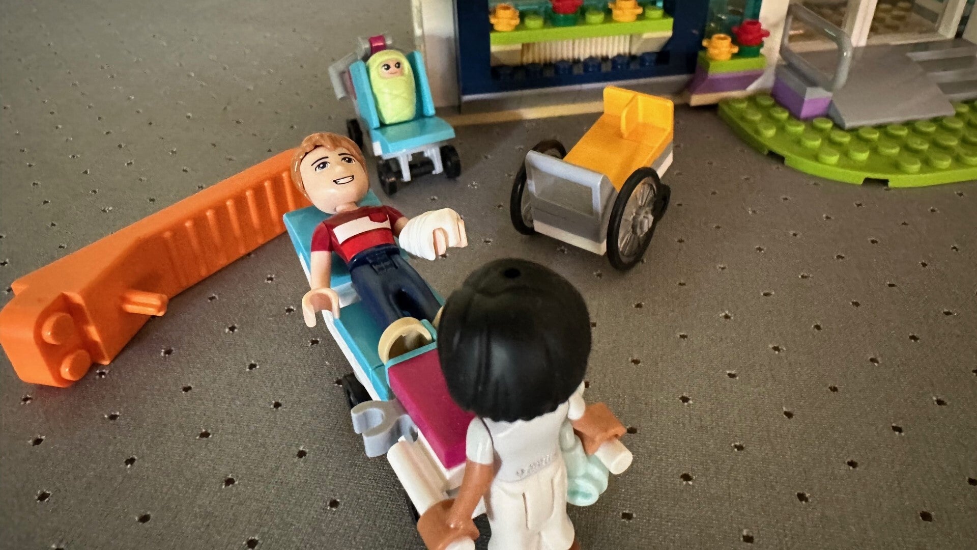 • Accessoire-elementen: gips voor een arm, tegels met röntgen-opdruk, vergrootglas, flesjes, schaar, waarschuwingsbord voor natte vloer en een zuigfles.