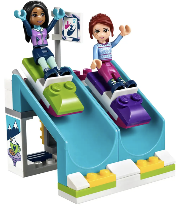 - Laat de twee sleeën van de dubbele glijbaan suizen.