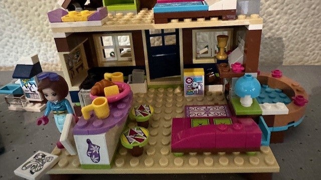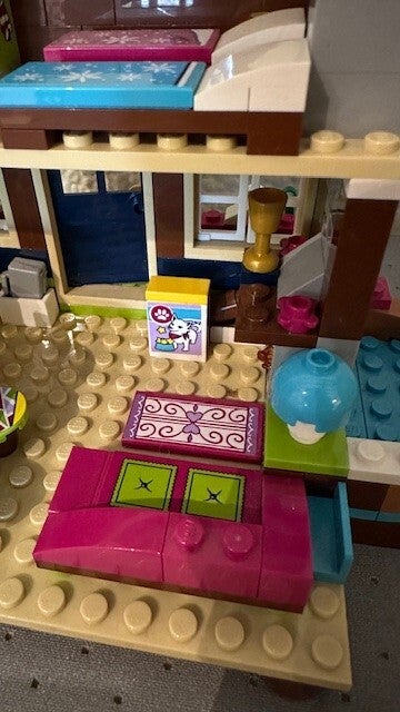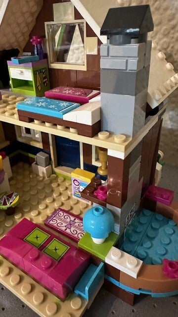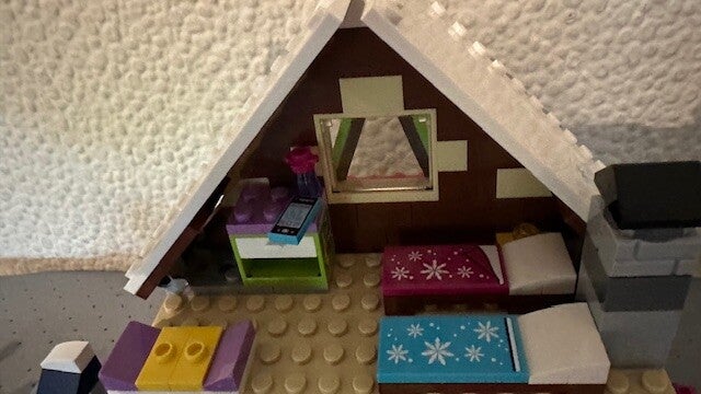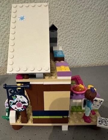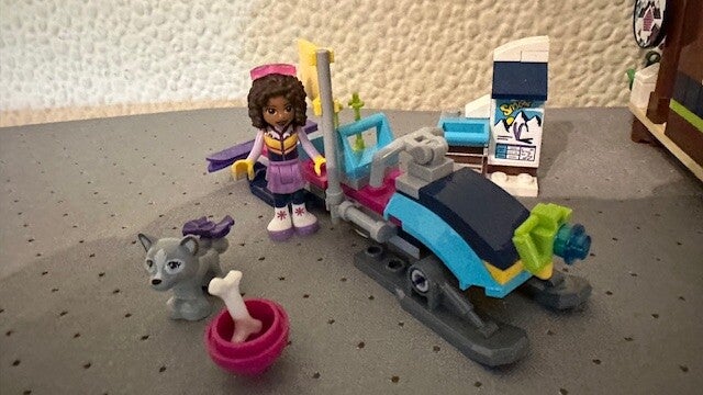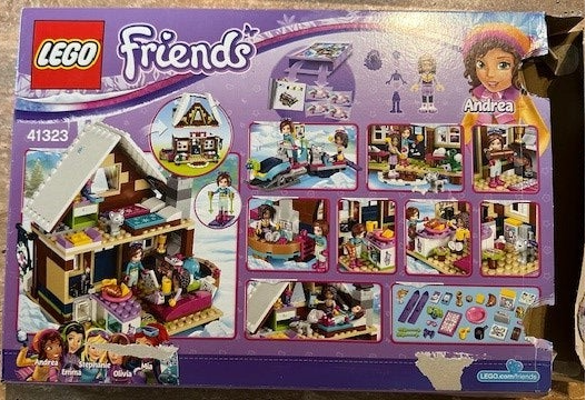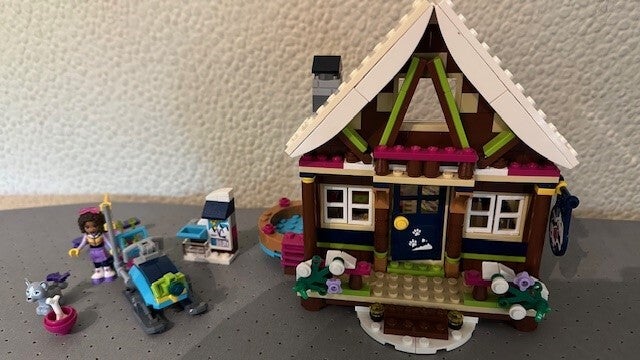 Het LEGO® Friends Wintersport chalet is inclusief buitenjacuzzi, keuken en zitgedeelte met open haard. Op de eerste verdieping vind je een slaapkamer met drie bedden, een kaptafel en een hondenbed. Er is ook een coole sneeuwscooter om eropuit te gaan en een schattige husky-puppy om voor te zorgen.