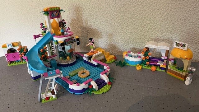 Het LEGO® Friends Heartlake zwembad is de ideale plek om een warme zomerdag door te brengen. De set is inclusief lange glijbaan naar het water, een duikplank die echt veert en een bar waar dorstige gasten naartoe kunnen zwemmen voor een koel drankje. Inclusief buitendouche achter het aquarium plus een toiletgebouwtje, een badmeesterspost en een jacuzzi met een ligbank waar de vriendinnen heerlijk kunnen ontspannen.
