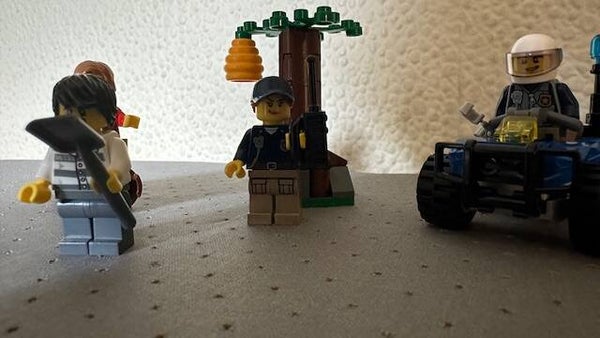 Patrouilleer in de bergen van LEGO City met je partner op de politiequad! Wat is dat nu? Het lijkt erop dat de boeven hun buit opgraven bij die boom. Snel! Dan kunnen we ze misschien verrassen en in de kraag vatten.