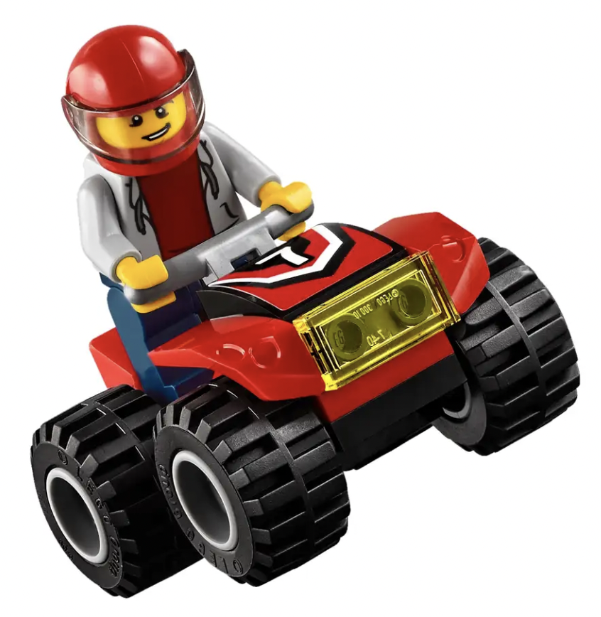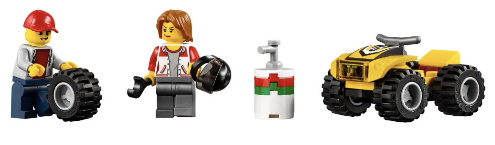 - Inclusief twee quad-coureur minifiguren.