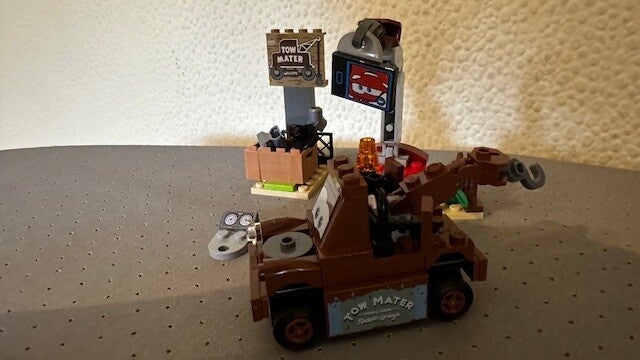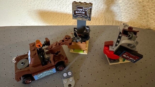 De dappere sleeptruck Takel uit Disney•Pixar's Cars neemt even pauze en belt via een videoverbinding met zijn beste vriend, de legendarische racewagen Bliksem McQueen.