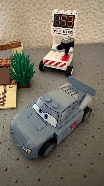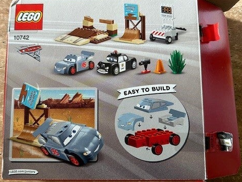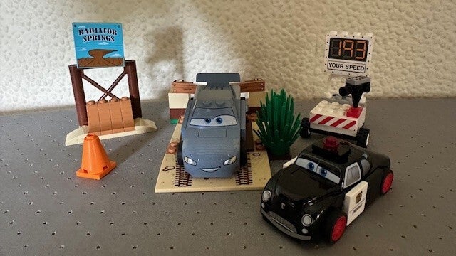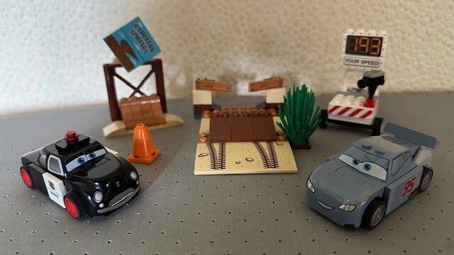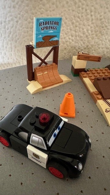 Inclusief Bliksem McQueen en Sheriff LEGO Juniors-personages.
