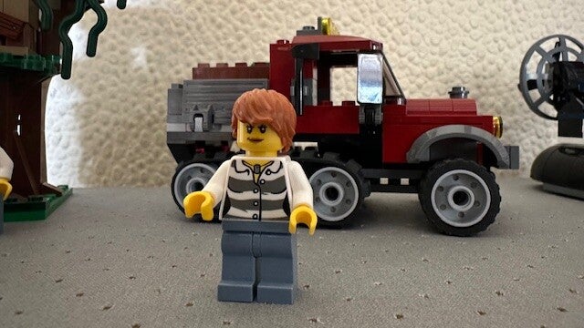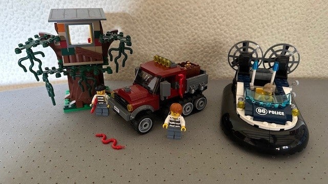 Inclusief 3 minifiguren met diverse accessoires: een politieagent en 2 boeven.