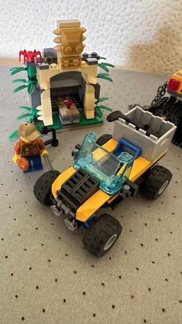Ontdek de geheimen van de LEGO® City jungle met deze Jungle missie met halfrupsvoertuig inclusief truck met rupsbanden achter, bergruimte voor de ketting en gereedschap plus een quad met afneembaar krat, een kampvuur en een tempel om zelf te bouwen met een diamant-element en een beweegbare steen waar een spin onder verstopt zit.