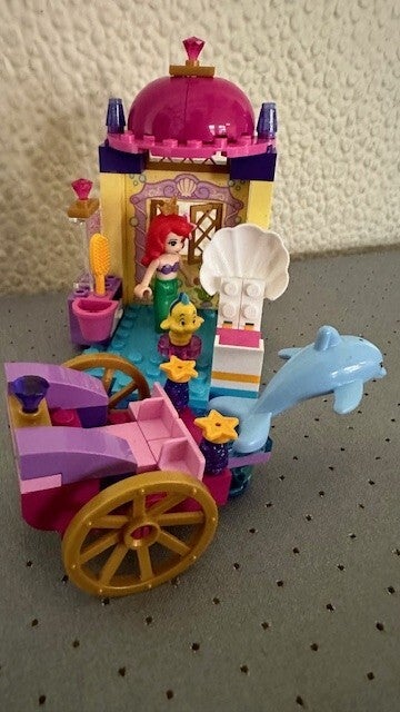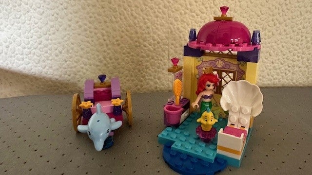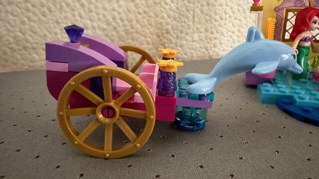 Disney Princess™ met Ariels door dolfijnen getrokken rijtuig inclusief onderwaterkasteel met stoel, spiegel, schelpenkrukje, laatje dat kan worden geopend en allerlei accessoires.