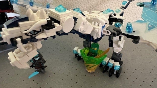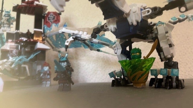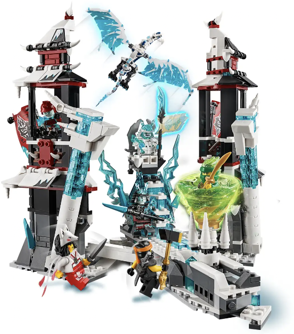 Deze speelgoedkasteelset is inclusief 7 LEGO® NINJAGO® minifiguren die nieuw zijn vanaf juni 2019: Lloyd FS (Forbidden Spinjitzu), Cole, Akita, Keizer van het IJs, Generaal Vex, Sneeuwstorm Zwaardmeester en Sneeuwstorm Schutter.